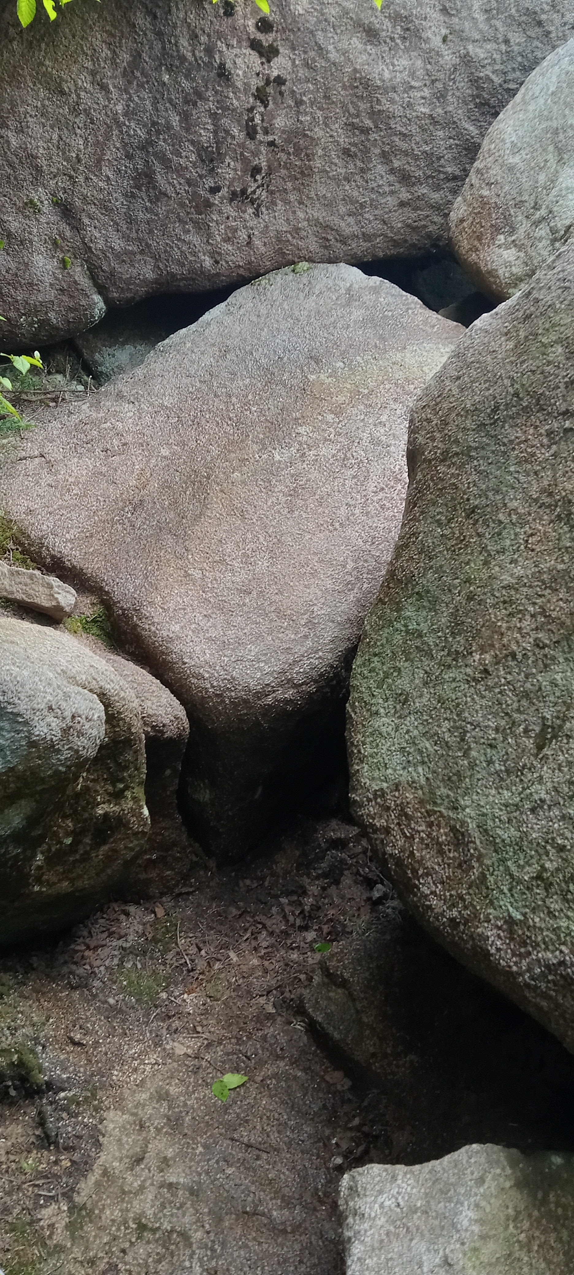 There is no scale to reveal that this is a 4-foot step-up, or down in my case. There were actually 3 places where the trail was so vertical 5 to 8' that there were steel pegs inserted into the boulders as steps. I can't imagine getting to the end of the AT and doing this final stretch with a full pack. Without the steel pegs it would be rock climbing.